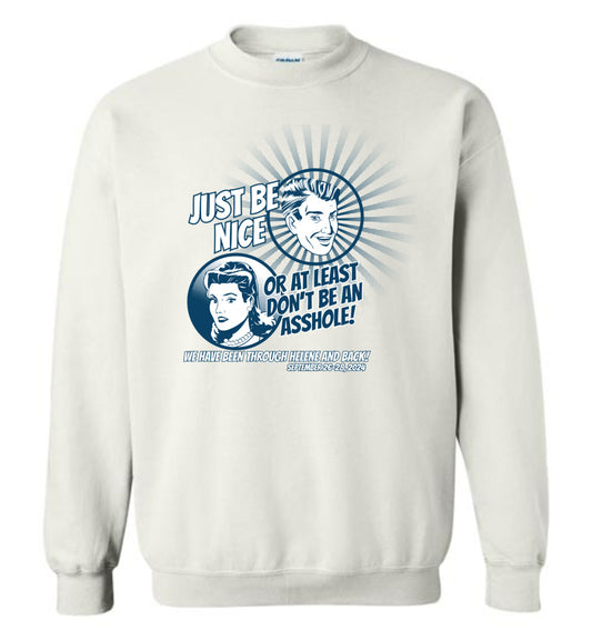 JUST BE NICE! - Hurricane Helene Disaster Fundraiser sweatshirt!