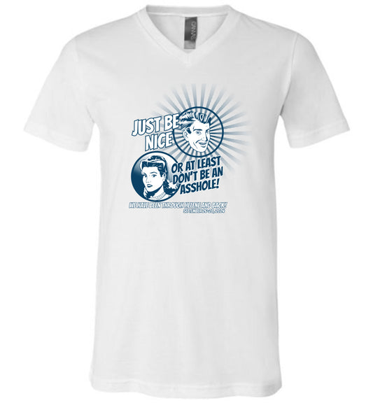 JUST BE NICE - Hurricane Helene Disaster Fundraiser v-neck tee!